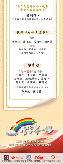 又是一年开学季,1日晚,2021年《开学第一课》于20:00播出。今年《开学第一课》以“理想照亮未来”为主题,用榜样的力量激励着广大青少年坚定理想、发愤图强。