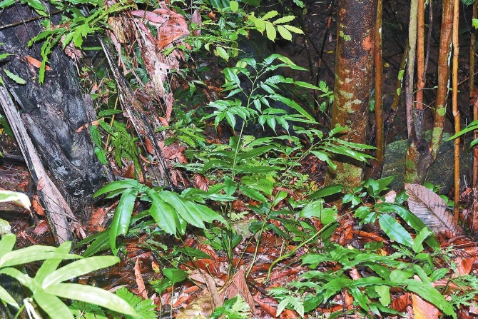 2011年,云南大围山河口管护分局的工作人员在进行植物调查时,发现了一种奇特的合囊蕨科植物,其形态特征刚好介于原始观音座莲属与观音座莲属(狭义)之间。经过近10年的观察和形态学、细胞学的研究比对,确认该种为一尚未描述的合囊蕨科莲座蕨属新物种。2021年8月26日,新发现的物种正式发表,命名为素功莲座蕨。该种主要分布于大围山河口辖区,目前仅发现3个种群,且数量较少(约30株),基于世界自然保护联盟(IUCN)濒危物种等级评估标准,将该物种评估为极危等级(CR),是一种典型的极小种群野生植物。