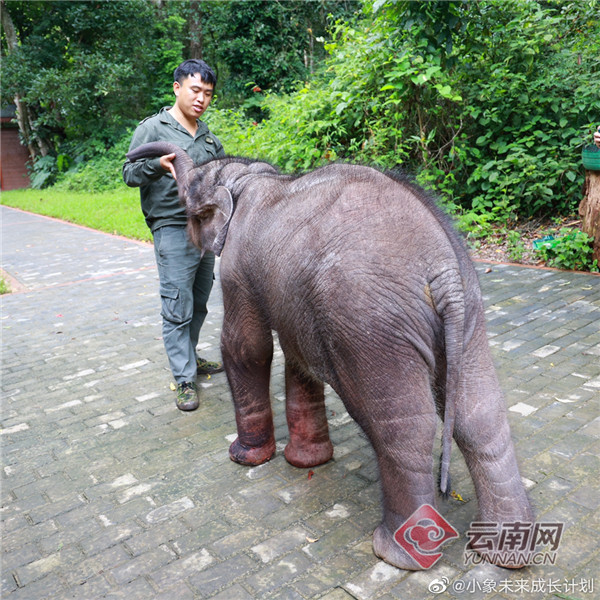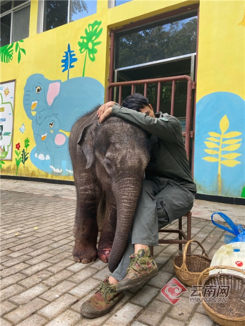 “龙龙刚来时,左前腿伤得都可以看到骨头,2个象爸24小时看护,给它上药、检查、喂食,两个月下来,龙龙的腿已经恢复了八九成。”“象爸爸”李涛说着,手轻轻地拍着龙龙的脑袋,龙龙亲昵地跟在他身边,一刻不离。