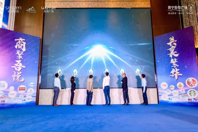吾悦广场,开一座火一座,星轶影城领导作为代表商家发言后,在场的星轶影院、国美电器、利郎、吉布鲁、九机网、小米、克罗米星、游戏大魔方、森马、面包工坊等数十家商家也现场与招商团队共同签字合影,完成意向签约仪式,与晋宁吾悦广场共谱未来繁华。