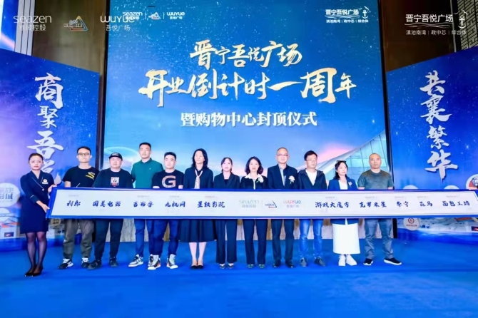 10日上午,活动现场人潮涌动,热闹非凡,晋宁区招商与投资促进局副局长张来宾与嘉宾共同登台参与启动仪式,随着倒计时5……4……3……2……1……!启动!晋宁吾悦广场开业倒计时一周年正式启动!