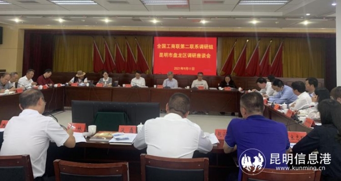 随后,调研组在盘龙区行政中心召开调研座谈会。盘龙区政协副主席赵云昆汇报了盘龙区民营经济和工商联工作情况。他表示,经过多年发展,盘龙区已成为昆明市对外开放的重要窗口和“城市会客厅”。北京路、东风路一纵一横“黄金十字”构建出中央商务区和总部楼宇核心经济带,正在助推盘龙建设成为辐射南亚东南亚区域性国际中心城市核心城区,盘龙区将继续以习近平新时代中国特色社会主义思想为指导,努力建设成为生命科技创新区、现代服务业示范区。会上,昆明雄达茶文化城等4家民营企业代表就生产经营过程中的困难与问题相继发言。
