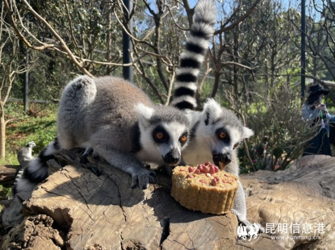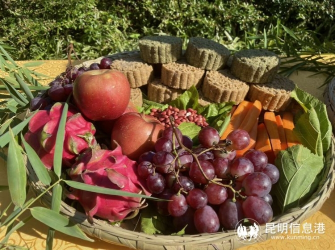 据介绍,云南野生动物园定期给动物们进行“食物丰容”,丰富多样的食物可以给它们补充生长所需的营养,更有利于动物们的健康。