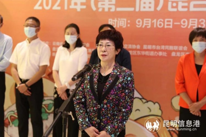 昆明市台联会长李为民在启幕仪式上致辞,他表示,本届昆台美食文化节起点高、特点强、亮点多、热点足,以线上云集市搭建融合昆台优质美食商品新平台,以线下展销售卖为基础延伸昆台“美食文化”主线,以文化为桥梁促进两岸同胞情感传递和融合,将进一步有效增强台胞的归属感,将“山海同云 明月同乡”昆台美食文化节打造成省市台联的一张重要文化名片。