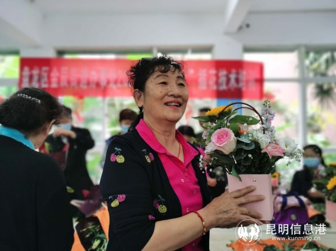 “大家插花之前要先修剪花的长度。”此次活动邀请了专业插花师现场教学,同时,映象社区及昆广网络准备了向日葵、红豆杉、玫瑰花等多种花束供现场的老人学习插花时使用。在插花师进行一番专业讲解后,参与活动的老人开始积极动手实践,剪切长度,挑选花束后进行搭配。一个多小时后,一盆盆精心搭配的作品呈现出来,居民们也在开心向彼此“炫耀”着各自的作品。