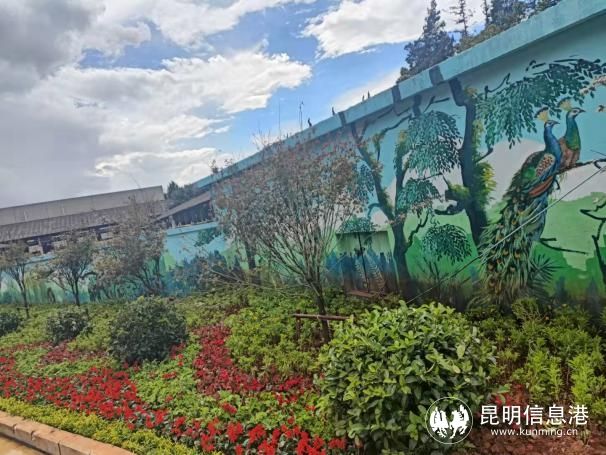 墙面高低起伏,且呈连续状,整个墙面看似一幅画卷,由雪山-戈壁-草原-高山森林-热带雨林-湿地-河流-湖泊-沙滩-海洋为结构主体,体现了密林深处的微观世界,突出昆虫、蝴蝶等微小生物的多样性环境,营造出万物和谐的生物多样性环境。在肯定道路绿化景观工作的同时,高庚对绿地、花卉布置、行道树、COP15宣传标语悬挂等工作中存在的问题进行现场指导。