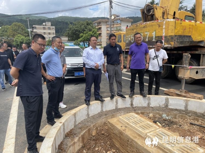 在龙泉路延长线盘龙区茨坝街道办事处辖区内,高庚一行先后来到龙泉路主路、昆明绕城公路西北连接线茨坝互通立交匝道出口、昆明植物园周边查看。在主干道两边种植了麦冬、带状木春菊,道路两侧的墙面进行彩绘处理,彩绘以《万物生长 万物和谐》为主题,以及展示昆明历史特色文化建筑开展。