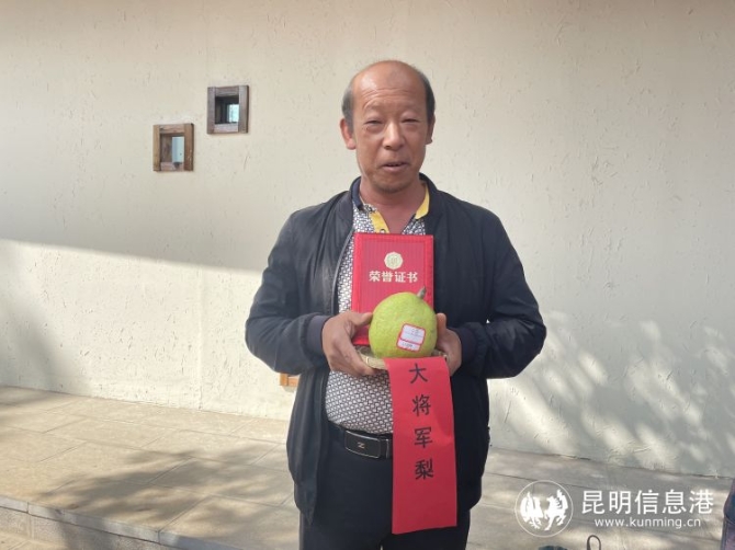 在“宝珠梨王”颁奖仪式环节,不单只比较梨的大小重量,还从外在果形、果斑、颜色、农残是否合格、内在糖分含量、水分等多个方面进行综合性的评比。最终,来自当地梨农赵南家一个重1.029千克的梨当选为今年的梨王“大将军梨”。