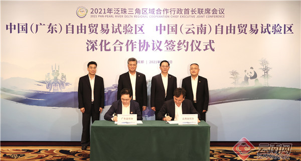 云南网讯(记者 张寅)9月23日,在成都市参加泛珠三角区域合作行政首长联席会议的云南省省长王予波、广东省省长马兴瑞进行工作会谈,并共同见证签署中国(云南)自由贸易试验区、中国(广东)自由贸易试验区深化合作协议。