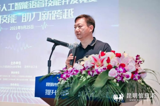 在开幕式上,五华区人力资源和社会保障局局长常宝雄进行了现场致辞,他表示此次竞赛紧紧围绕“提升新技能,助力新跨越”的主题,充分发挥了职业技能竞赛在技能人才培养中的积极作用,通过举办人工智能语音技能开发竞赛,强化语音技术与全社会各行业及乡村振兴应用场景需求的衔接,将不断提高语音产业自主应用开发能力,壮大人工智能语音技能队伍。