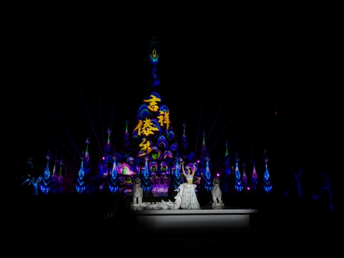 孔雀部落(傣族)实景灯光演出《吉祥傣乡》,领略傣乡曼妙风韵。
