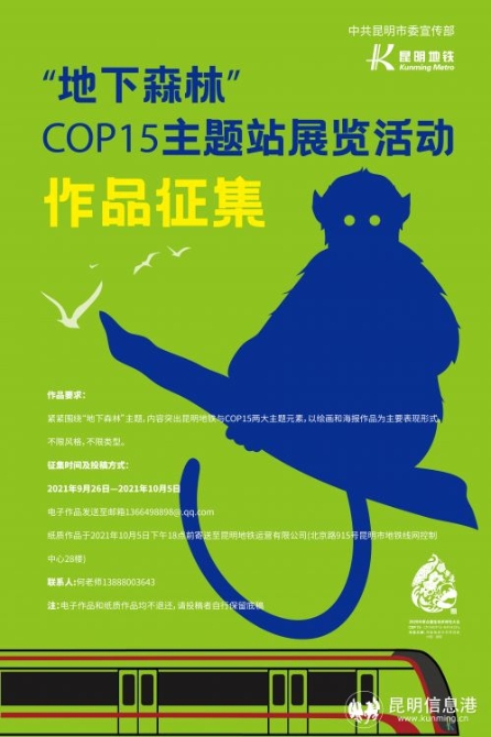 昆明地铁COP15 系列宣传活动旨在结合COP15 “生态文明:共建地球生命共同体”的主题,向大众传播尊重自然、顺应自然和保护自然的价值观,弘扬绿色环保理念,倡导广大市民低碳绿色出行,共建生态文明,共享绿色未来。