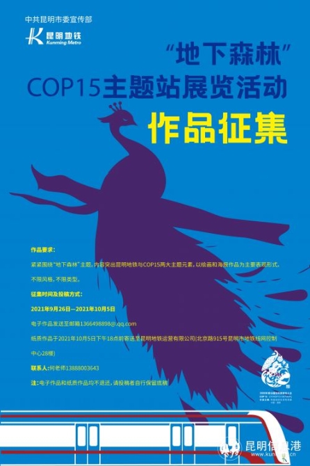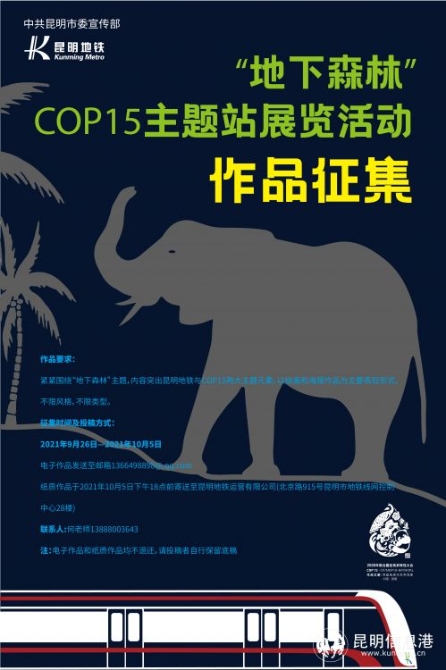 作品征集时间从即日起到2021年10月5日止,征集结束后,将筛选出优秀作品,对作者发放证书。同时,优秀作品也将在昆明地铁“地下森林”COP15作品主题展览上展出,与广大市民乘客共享艺术与自然之美。