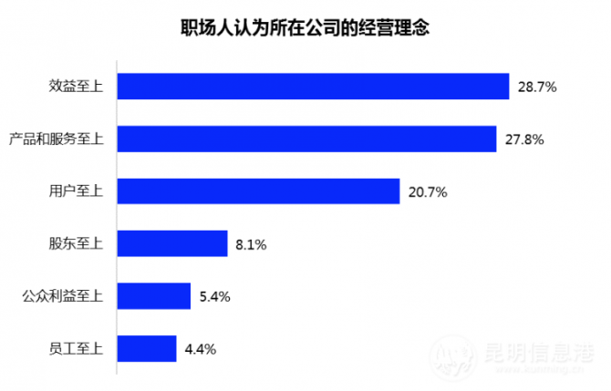 28.7%的职场人表示公司的经营哲学是“效益至上”