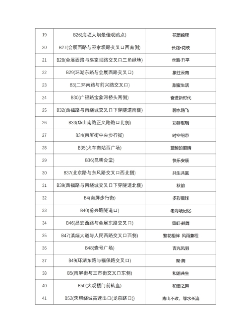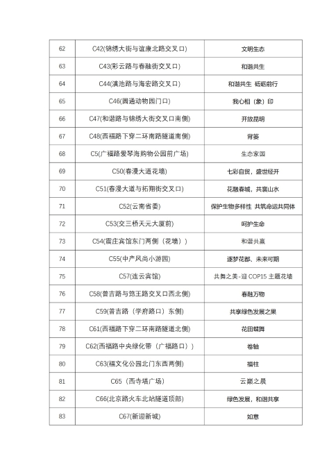 据了解,100组花坛分布于滇池国际会展中心片区、滇池海埂片区、历史文化片区、市级行政中心片区,以及机场高速、滇池路、广福路、东风路、北京路、彩云路、机场路、火车南站等昆明市重要的片区、道路和节点,展现着云南生物多样性保护的成果,展示着极具魅力的云南特色。恰逢国庆节将至,组委会为大家列出了“赏花坛地图”(100个点位详见附件),诚邀市民朋友们到各个点位观赏拍照,与各色彩丰富、造型独特的花坛来一场美丽的邂逅。