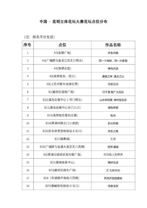 附大赛花坛点位分布: