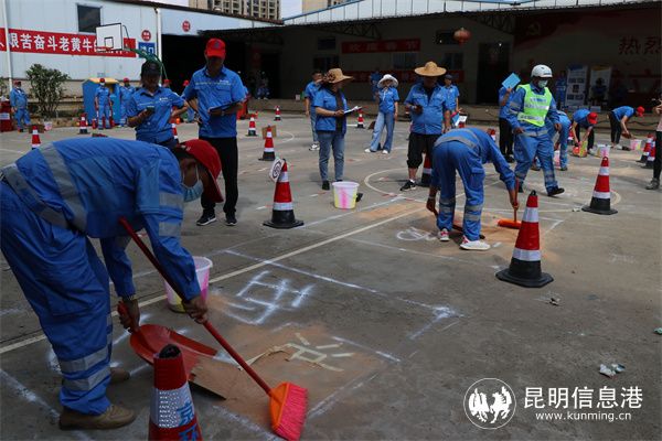 与往年技能大比武不同,为充分检验公司应急小组联动处理问题、突发事件应急响应和处理的能力,今年特增设了应急处置的比赛环节,并设置了三个应急场景。交通事故应急:在画好线的十米范围内,参赛队员要完成标准位置的安全锤桶摆放(五个),并将标有事故现场的区域用沙子覆盖、清理、回收。疫情应急:在规定范围内,参赛队员要完成口罩回收桶的摆放,以及口罩回收、消毒的规范动作作业。消防应急:正确使用灭火器扑灭火情。