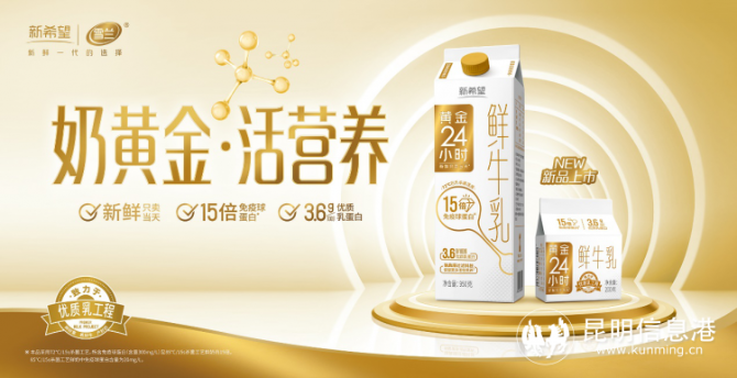今年6月12日,新希望乳业旗下的全资子公司新希望雪兰牛奶上市发布了一款新品黄金24小时鲜奶,新发布的“黄金24小时”严格采用黄金标准,牢牢把握“奶源、时间、温度”三要素,从“A+”级黄金奶源,“72℃、15秒”的黄金杀菌温度,到24小时黄金保鲜时间,将“24小时鲜奶”的理念与“优质乳工程”的高品质实现了创新叠加,实现了15倍免疫球蛋白的最大化保留,优质乳蛋白提升至3.6g/100g,以 “黄金标准”重新定义了云南鲜奶价值。