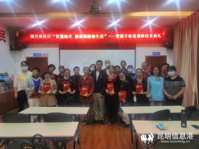 为了更好地服务社区居民,帮助老年人掌握智能手机的使用方法;让社区老年人能够与时俱进、享受现代科技带来的便利;拉近社区老年人与子女的距离,扩大交友圈子,拥有一个健康、丰富多彩的生活,锦兴苑社区依托黑林铺社会治理先锋项目,于2021年9月2下午14:30开始在于每周四社区居委会老年活动室开展智能手机培训活动。9月30日是培训班的最后一期,当天活动,五华惠民社工组织学员开展了结业典礼。