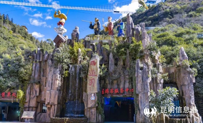 云南西游洞风景区是距昆明市区较近的溶洞,同时也是《西游记》续集的取景拍摄地。景区由西游洞、水帘洞、观音洞、猴山、秦王宫等景点构成,并有高空玻璃桥、悬崖秋千、时空隧道、丛林漂流、佛手观景台、西游飞车、威亚等一批网红项目,深受市民游客欢迎。值得关注的是,隶属西游洞旅游开发集团下的松鹿部落景区正在建设中,预计明年初对外开放。