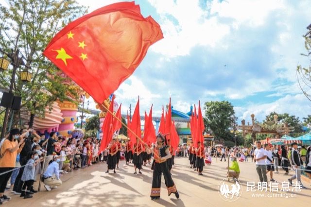 十月一日,喜迎国庆。七彩云南·古滇名城度假区(以下简称古滇),在国力富强、国潮盛行的当下,挖掘中华民族传统文化与现代价值观、现代主流审美,把两千年前的古滇国时空搬到面前,为人们呈现一场独树一帜、精彩纷呈的古滇国潮。