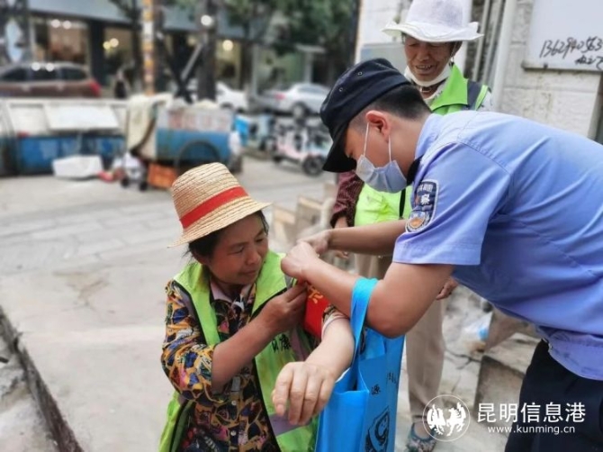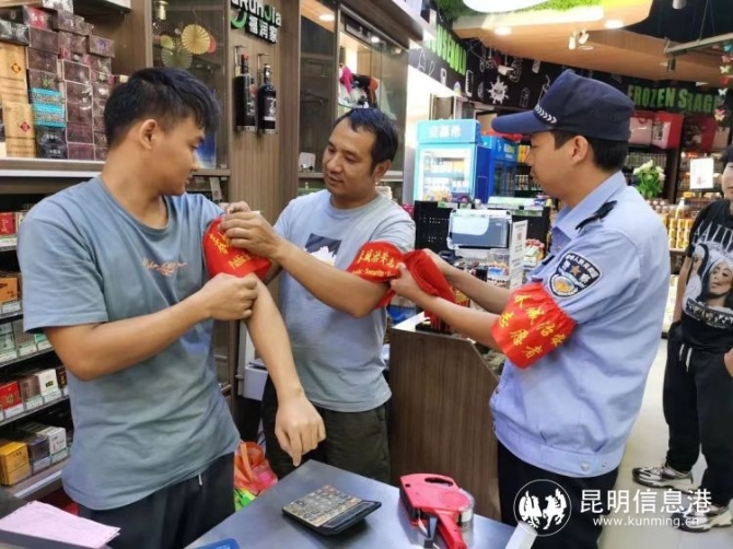 晋宁公安坚持依靠群众,将辖区内老战士、老公安、小区物管,沿街店铺店员、清洁工,外卖小哥、快递员等五类人员发动成为“红袖标”治安志愿者,充分发挥人民群众在群防群治工作中的主力军作用。