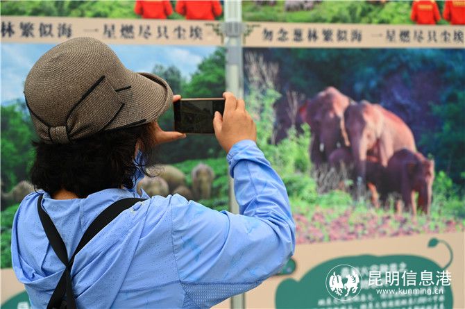 昆明市森林消防支队直属大队二中队,开展了一场以守护野生亚洲象家园、预防森林火灾为主题的科普宣传专项执勤行动。活动现场设置了100幅印有北移亚洲象的摄影图片和森林防火小常识的宣传展板,执勤队员现场为游客讲解了亚洲象的习性特点,“亚洲象是亚洲哺乳动物中体积最大的,喜欢群居生活,不仅喜欢吃香蕉,还喜欢吃玉米、菠萝,而且它们是蜷缩着鼻子躺着睡觉的,样子十分的可爱······”通过讲解员的解说,游客们了解到亚洲象的习性与追象护象路上的趣事,一张张关于追象照片背后的故事,让游客们对关注生物多样性,保护生态有了共同的理念认识。