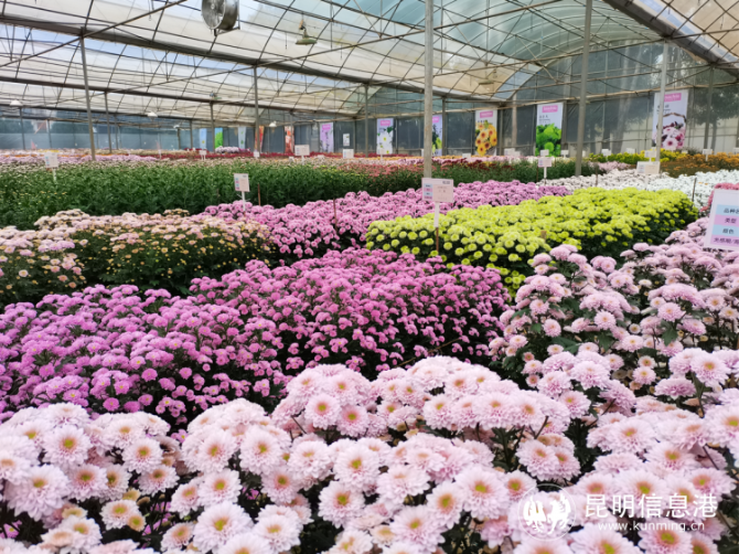 园区年产高档鲜切花8.15亿枝、盆花1000余万盆,涵盖蝴蝶兰、大花蕙兰、菊花、玲珑、康乃馨、红掌、玫瑰等多个品种,产销量在国内市场占50%以上,年产值近14亿元,虹之华菊花种苗占全国出口份额95%,占日本进口市场的40%以上,是日本进口菊花种苗最大供应商、全国菊花最大生产企业。