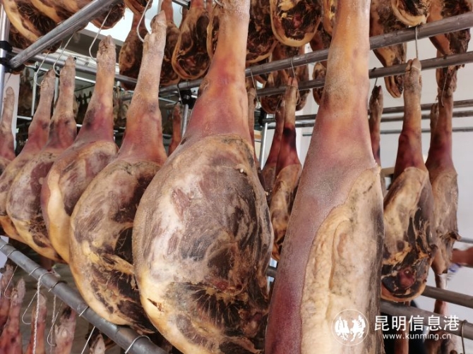 到了禄劝,不得不提的就是禄劝地理标志产品——禄劝撒坝猪,撒坝猪肉,具有肉类氨基酸含量高、微量元素高、脂肪含量低、肉皮薄等特点。禄劝撒坝火腿,精选撒坝猪后腿修割成琵琶形,经低温冷凉、排血,将配制好的盐料分三次上盐、堆码、清表面,上挂通风阴凉6个月左右自然熟化而成,颜色明亮,红白清晰,吃起来香而不腻,不仅继承了撒坝猪肉良好的肉质特点,而且因其色艳、味鲜、生态营养等独特的品质在本地消费者中拥有不俗的口碑。