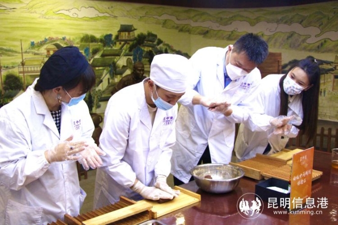 8日,6位微博大v走进昆中药非遗体验馆,与云南省级非遗代表性传承人李恒(炮制工艺),区级非遗代表传承人阮云(泛丸制作)亲密互动,通过大蜜丸制作、药材辨别、药材研磨、慧眼识药称药等众多打卡体验。揭秘了依托现代产业技术与传统工艺的融合,昆中药精品国药的智能制造的“高新秘密”。
