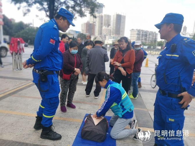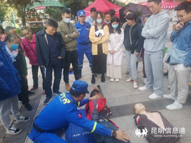 活动现场,各单位采取集中发放宣传资料、展示灾害图片、专家现场讲解各类防灾减灾救灾科普知识等形式,向公众普及各类自然灾害、事故灾难常识和防范技能。同时,盘龙消防救援大队开展应急救援装备展示及现场互动,同时邀请蓝天救援队开展应急救援知识宣传。向参加活动的群众现场示范如何正确救治伤员,给现场观众上了一堂实实在在的应急救护实践操作课。活动最后,专家现场演示了心肺复苏法,看完专家的演示后,现场观众忍不住纷纷上前对着假人进行心肺复苏的演示,专家在现场适时指导。专家和群众之间的互动大大提高了此次国际减灾日的宣传实效。