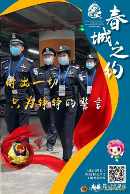 10月11日,《生物多样性公约》第十五次缔约方大会(COP15)在昆明揭幕,昆明市公安局西山分局全警参与,以高度的政治责任感和使命感投入大会安保工作。(6686体育 记者合宇聪)