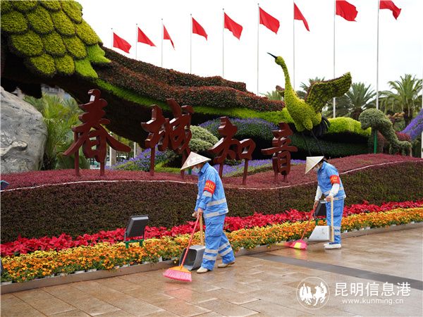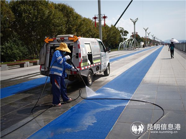 为迎接盛会,春城昆明以花为媒,打造了惊艳全国的立体花坛,但也给环卫作业带来了极大的挑战。“景观提升后,难免会对路面造成污染,虽然绿化部门会做清理,但很难达到我们可‘席地而坐’的标准,所以针对进行了提升改造的路段,都会安排保洁员第一时间清理。9月25日,绿化提升工程接近尾声,我们又进行了一次彻底的深度作业,以还原道路本色。”梁滨说。