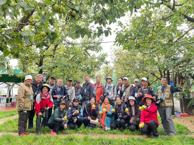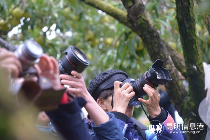 从湿地公园出来后,一行人立马前往以宝珠梨闻名的万溪冲社区。呈贡宝珠梨是昆明最具代表性的一张名片,是云南高原地方特产,物种资源珍稀,绝无仅有,是呈贡人文历史活的标本库,是不可再生的资源。进入梨园,映入眼帘的是一棵棵挂满果实的梨树,硕大的果实在摄影师们的镜头下更令人垂涎。在梨园,眼尖的几位摄影师还注意到了一旁的番茄地,藤曼上挂满了果实……这里到处都散发着生物多样性的魅力。