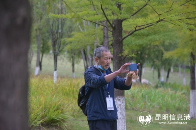 依依不舍从梨园离开后,一行人来到了本次活动的最后一站——白龙潭公园。在昆明,各种龙潭少不了。作为紧邻昆明南站的新建公园绿地,整个公园乔木占植物品种的80%,常绿乔木又占乔木的80%,呈现出一年四季都有景的效果。摄影师们在公园里面不断的探索着,寻找最佳机位,拍下了一张纸绝美的照片,无论是植物还是动物,亦或者菌类都成为了摄影师们镜头下的“宠儿”。