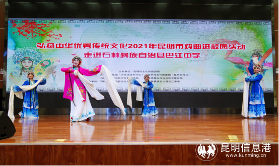 “弘扬中华优秀传统文化2021年昆明市戏曲进校园、进乡村系列活动”由昆明市文化和旅游局主办,昆明市文化馆 、昆明市非物质文化遗产保护中心承办。旨在促进传统戏曲传承,弘扬中华优秀传统文化,丰富和活跃人民群众精神文化生活,预计到今年年底,举办进校园16场活动,进乡村60场活动。