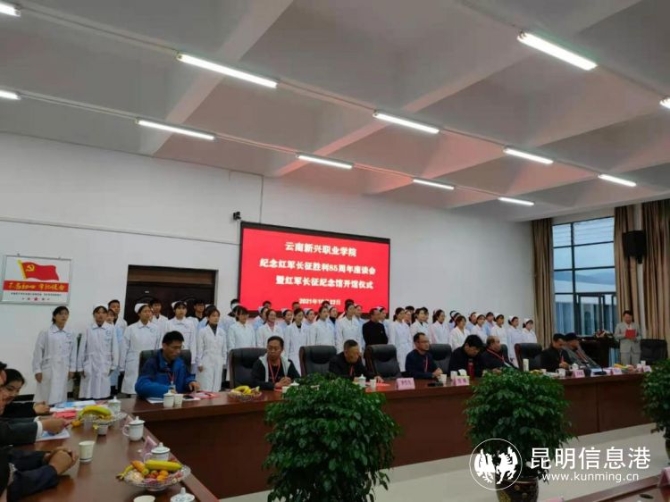 座谈会上,云南新兴职业学院董事长关祥祖介绍,为弘扬长征精神,传承红色基因,赓续共产党人的精神血脉,云南新兴职业学院在军事科学院,长征史研究专家亲临现场指导下,建设红军长征红色校园。红军长征纪念馆展示面积约 2400平方米,图片 815张,实物若干,很多珍贵资料是第一次展出。分别展示长征伟大征程,参加长征的部分女红军,红军驰骋云南,红军转战昆明,红军长征过禄劝,中央红军长征途中党中央召开的重要会议,新中国成立后荣获元帅、大将、上将的红军将领,开国元勋子女追寻父辈长征路等内容。为师生员工深度体验和感受伟大长征精神提供学习教育基地,增进师生热爱党、热爱祖国,增进他们对党对国家、对人民深厚感情。