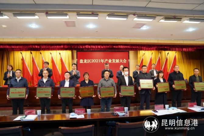 会上,区政府副区长蒋晓庆同志介绍盘龙区“十四五”期间产业发展思路和布局,对盘龙区楼宇(总部)经济、现代服务业等扶持政策进行解读。参会领导为10户2020年盘龙区纳税大户企业代表,10户获评2020年盘龙区四星级、五星级的楼宇(总部)企业表彰授牌。昆明恒颖地产有限公司、云南城投同德房地产开发有限公司、云南农垦集团有限责任公司代表、建信云能数字科技有限公司等四家企业代表作了发言。区委书记沃磊同志作了讲话,对盘龙区产业发展提出了期盼和要求。