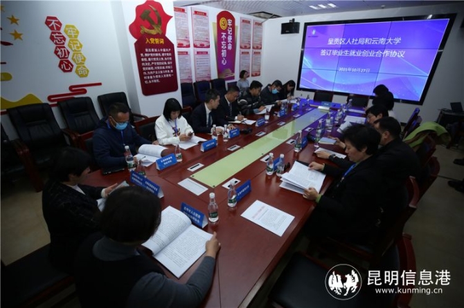 在签约仪式现场,呈贡区人力资源和社会保障局与呈贡大学城的10所高校分别签约,共同为高校毕业生就业、创业提供助力;云南白药集团股份有限公司、云南云上云大数据产业发展有限公司2家企业代表也同昆明呈贡大学生就业创业市场签订了合作共建协议。