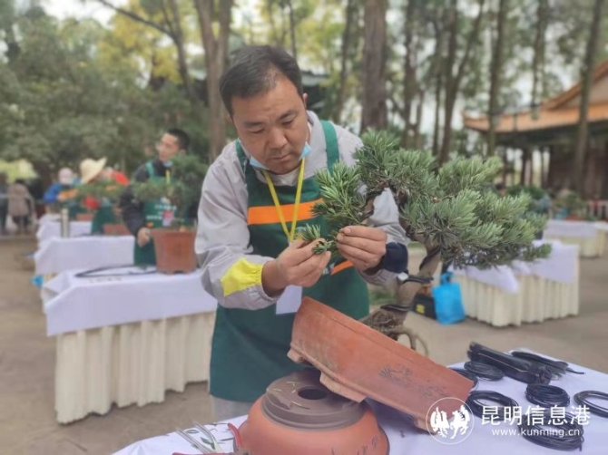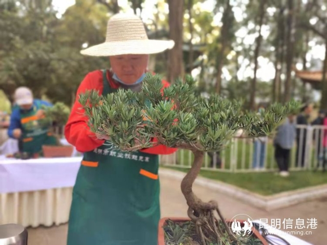 作为本届盆景赛评委之一的园林高级工程师许万明介绍,此次对盆景的评选主要依据“一景二盆三架四题名”来综合评分,其中“一景”最为重要,占总分60%,既要看选手在创作盆景时对植株进行的整体造型,枝条分布是否合理,整体要形似一株微缩于小盆中的大树,也就是要达到盆景虽如人作,宛如天成,要达到园林美学和诗书画结合的完美运用。此外,在盆景的创作中,盆的比例和植株的比例要协调, 还有盆景创作完成时,要在上面铺上苔藓,这些都是对盆景创作打分的标准。“目前云南的盆景制作已从10多年前的下游水平提升到全国中等水平,全省盆景创作人员达到2千余人以上。今后还会通过类似的技艺比拼活动,继续提升盆景创作水平。”许万明说。