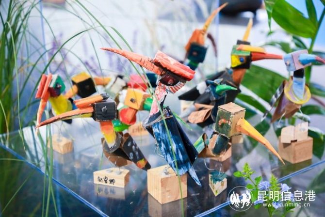 本届文博会,五华展区还展出了金鼎奖文创大赛作品,包括两款海鸥文化节IP形象文创延伸品,“盖世鸥侠”形象风趣幽默,表现出红嘴鸥“快意江湖”的侠义气概,另一款产品“云鸥”则活泼可爱,表现出了红嘴鸥对春城人民的喜爱。在展区营造的奇幻森林中,聿安品牌策划还联合问象美术馆展出了童趣探索单元的部分获奖作品,由小朋友创作的云南亚洲象、犀鸟、红嘴鸥、云南野生菌等动植物形象且生动,构建出了美好、和谐的自然生态场景。