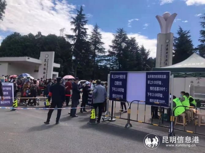作为COP15大会室外考察展示点,前期根据疫情防控要求和园区承载力,同时保证公众参观体验效果,位于中科院昆明植物研究所西园内的扶荔宫,从10月25日起实行分区域、分时段限流免费开放体验,每天限400人的名额进行现场预约,分批次进入扶荔宫后,有专业讲解人员为每个场次入园参观者讲解园内植物。但现场预约带的问题是,免费对公众开放以来,广大群众入园参观热情高涨,每天有大量参观者聚集于门口排队,长时间排队、拥挤,难于管理等问题随之出现。