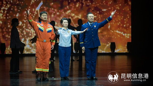 作为本次活动的亮点,文艺汇演在开场舞《淬炼》中拉开帷幕。整场演出共分“忠”“为”“情”三个篇章,整场演出紧贴消防特点,紧扣时代脉搏,充分展现了昆明消防指战员丰富多彩的警营文化生活,展示了当代消防指战员良好的精神风貌。歌舞《逆行者》《让生命在阳光中燃烧》等节目从不同侧面展现了消防指战员初心如磐、使命在肩的坚定信仰,刻画出一幕幕昆明消防指战员坚持生命至上、人民至上而浴火奋战、救人于危难的画面,同时将消防安全知识和消防文化完美融入其中。大气豪迈的诗朗诵《凝聚前行力量》则演绎了“艰苦更要坚守、后发更当争先”的昆明消防创业实干精神。