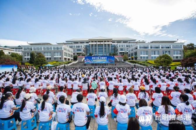 昆明市公安局经开分局局长那铮代表全体公安民警表态,媒体、学生志愿者代表依次上台发言。警、校、媒三家领导向昆明学院反电诈学生志愿者授旗,1000余名反电诈学生志愿者集体宣讲倡议词,决心绷紧安全之弦,投身反电诈宣传,共建平安校园。