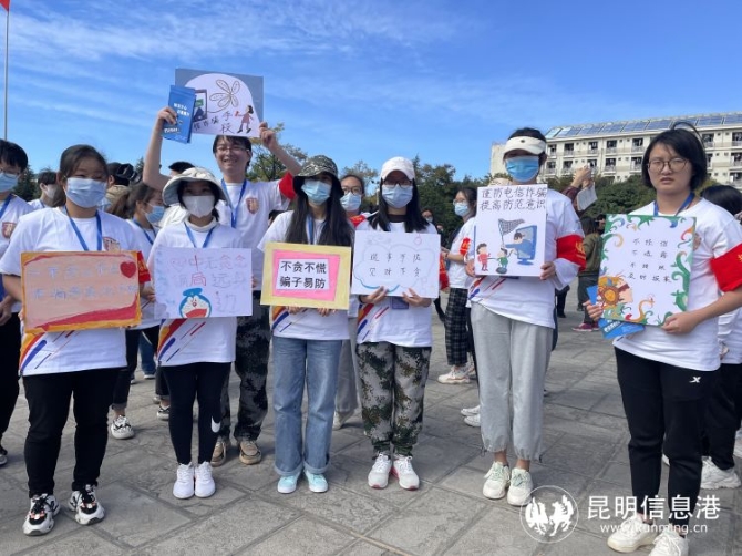 活动现场,昆明学院还组织学校师生通过设计反电诈文创产品、手绘文化墙、手绘校园反电诈海报等形式宣传反电诈知识,昆明公安通过发放《全民反诈宣传手册》、张贴海报、悬挂标语、摆放展板、发放反电诈文创产品、开展法律知识咨询等形式,推广“金钟罩”反诈小程序、国家反诈中心APP,向全体学生传授防电诈、防盗抢、防传销的实用技巧,并邀请广大师生关注“昆明警方发布”系列新媒体账号,填写“问计于民大走访”调查问卷,积极招募反电诈志愿者,汇集更多社会正能量青年学生参与社会治理,提升社会责任感。