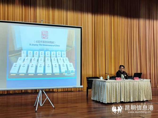 市委宣讲团成员、中共昆明市委党校副教授、国家注册企业培训师梅长青作宣讲报告。