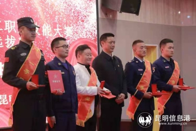 云南省退役军人事务厅、昆明市退役军人事务局、昆明市消防救援支队等单位相关负责人以及昆明市各县区退役军人事务局代表、受表彰个人和团体代表等出席颁奖仪式。昆明市退役军人事务局党组成员、副局长杨秀光在颁奖仪式上总结发言并宣布大赛闭幕。