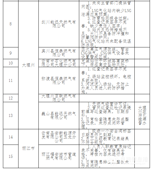 此次检查共计15家城镇燃气企业,其中包含6家液化石油气企业和9家天然气企业。