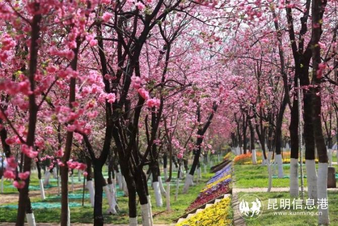 昆明动物园最知名的“圆通樱潮”,是昆明园林的著名景观,被誉为“昆明新十六景”之一,2005年被列入昆明市非物质文化遗产名录,2017年被列入云南省非物质文化遗产保护名录。昆明动物园每年举办樱花节,成为昆明春季不可错过的赏花盛会。樱花节期间丰富多彩的节庆活动,让“圆通花潮”这一传统景观焕发新的生机和活力,也使踏青赏樱民俗活动得以传承。