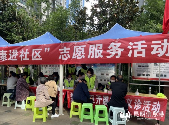 活动中,昆明城市学院的师生及党员志愿者为新域社区辖区居民提供专业的健康咨询,现场为居民测量血压,并对老人进行简单的触诊按摩。根据每个人不同的体质和问题有针对性的进行按摩或理疗。此外,对居民们提出的健康问题耐心解答,并在现场详细讲解按摩、拍打穴位等传统中医理疗的手法,指导高血压、糖尿病等慢性病的老年居民进行调理。社区工作人员则向参加活动的居民发放了合理用药、合理膳食等宣传资料,从而增强居民们的健康意识。